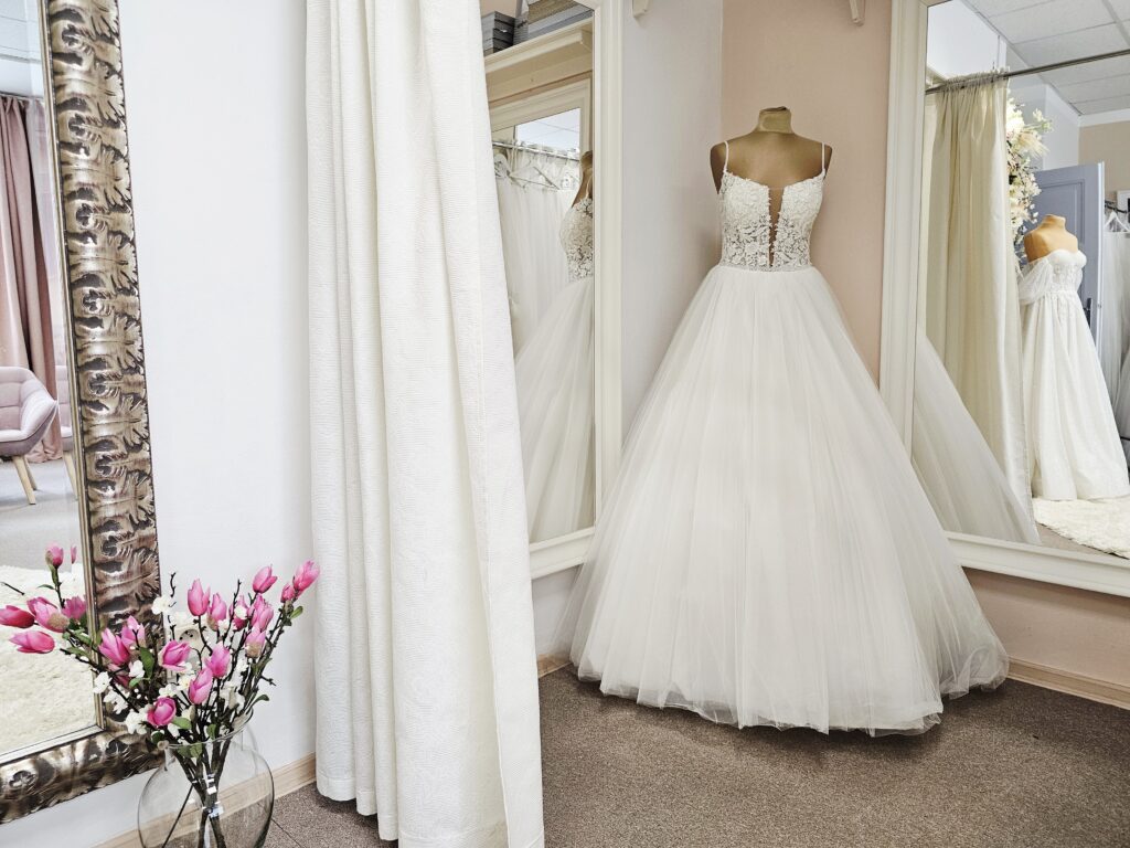 Zkoušení šatů i pánských obleků je bez poplatku.